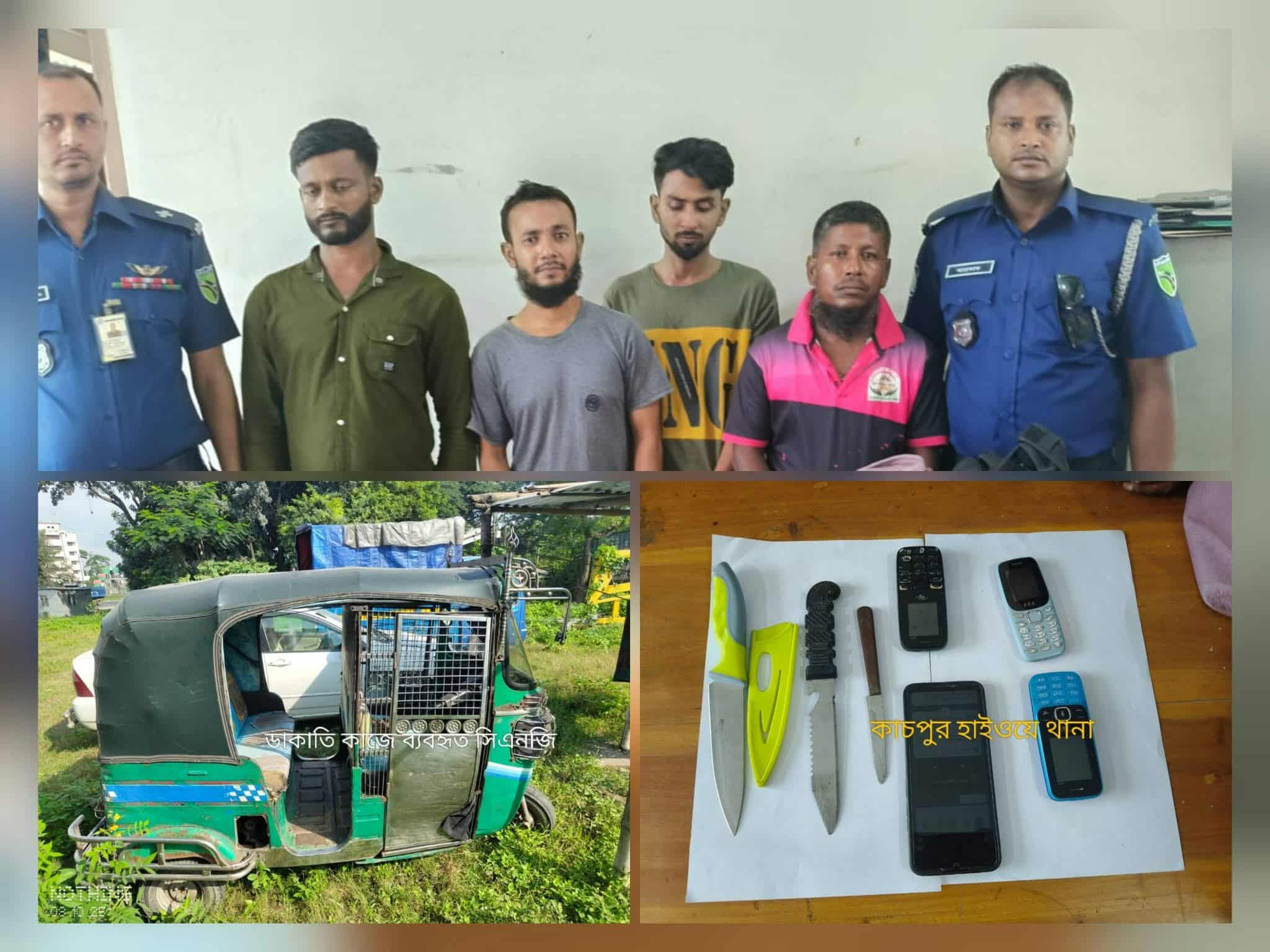 কাঁচপুর হাইওয়ে পুলিশের অভিযানে ৪ ছিনতাইকারী গ্রেফতার