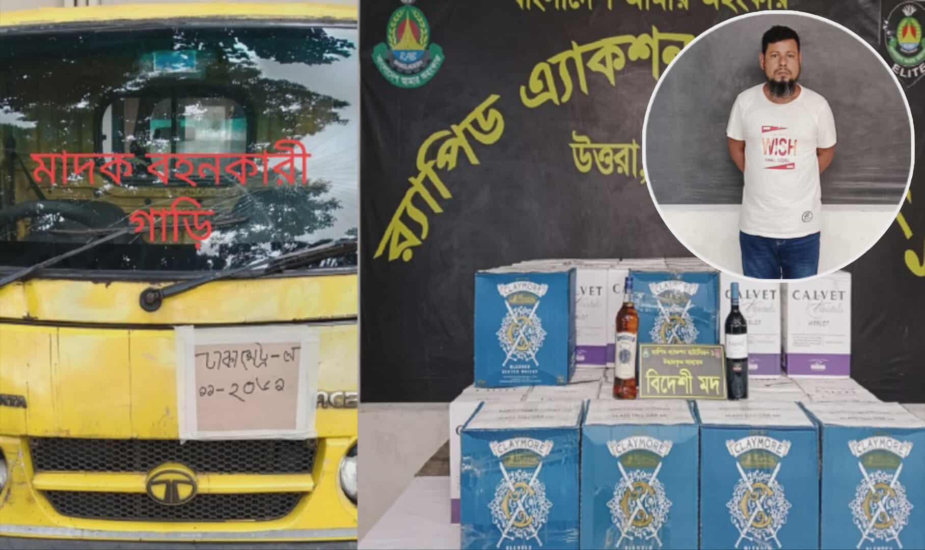 খিলক্ষেতে পিকআপে মিলল ৫৫২ বোতল বিদেশি মদ,গ্রেফতার ১