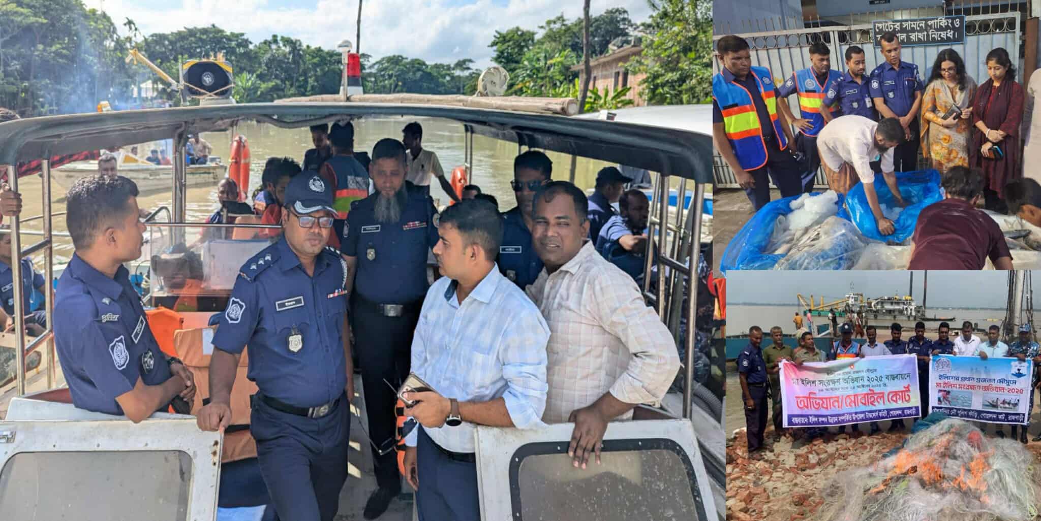মা ইলিশ সংরক্ষণ: নৌ পুলিশের অভিযানে ইলিশ ও অবৈধ জাল জব্দ